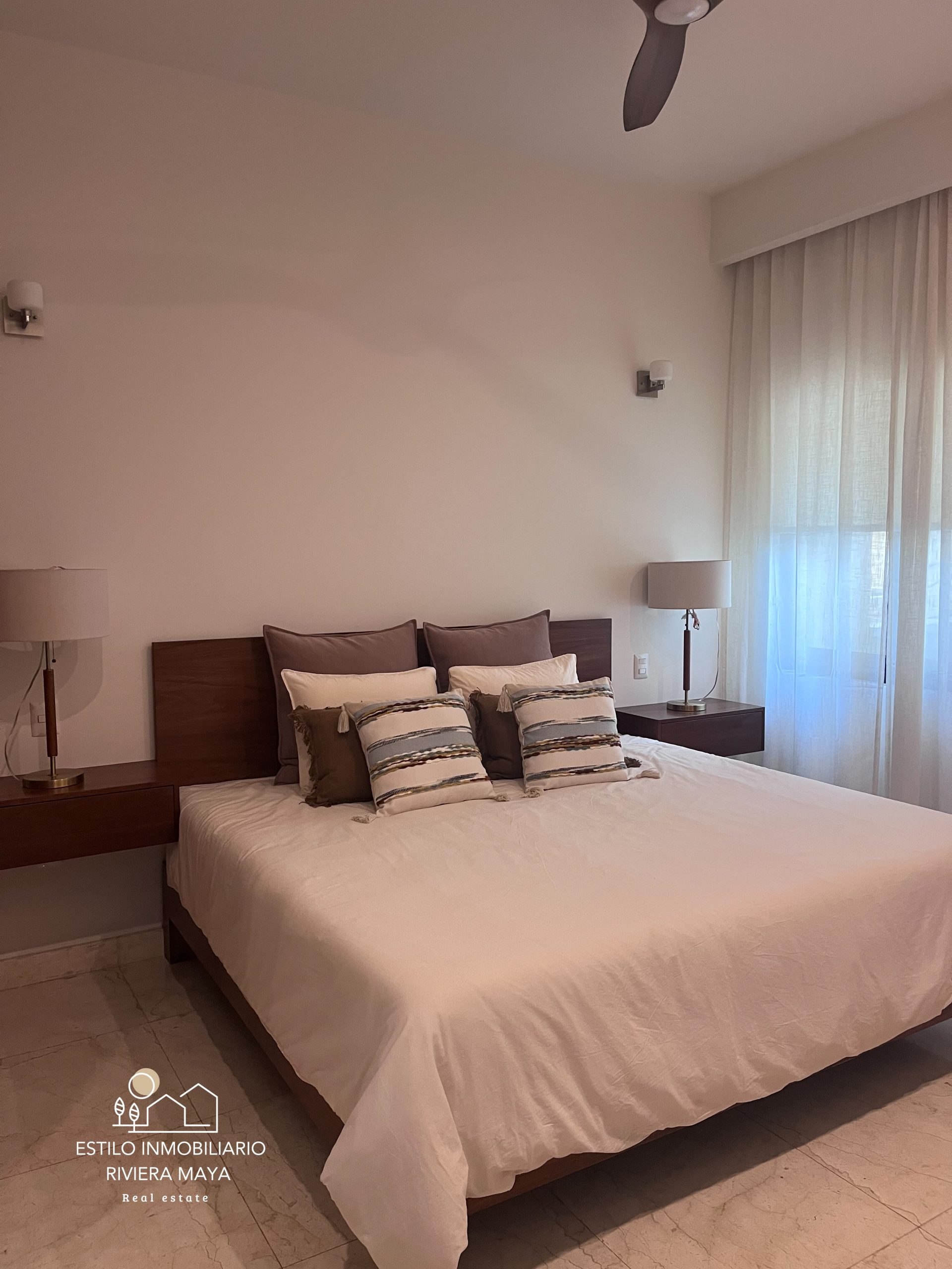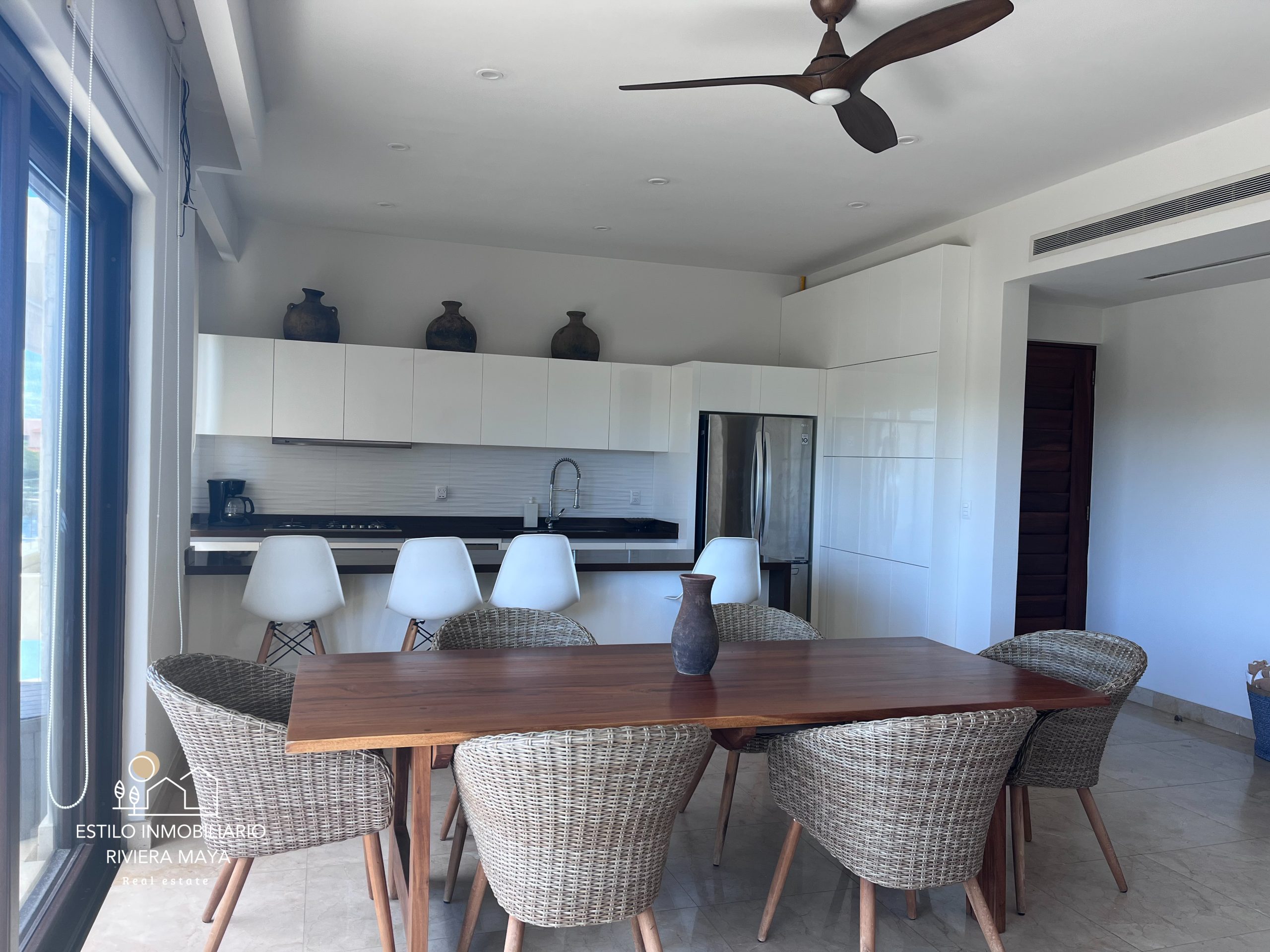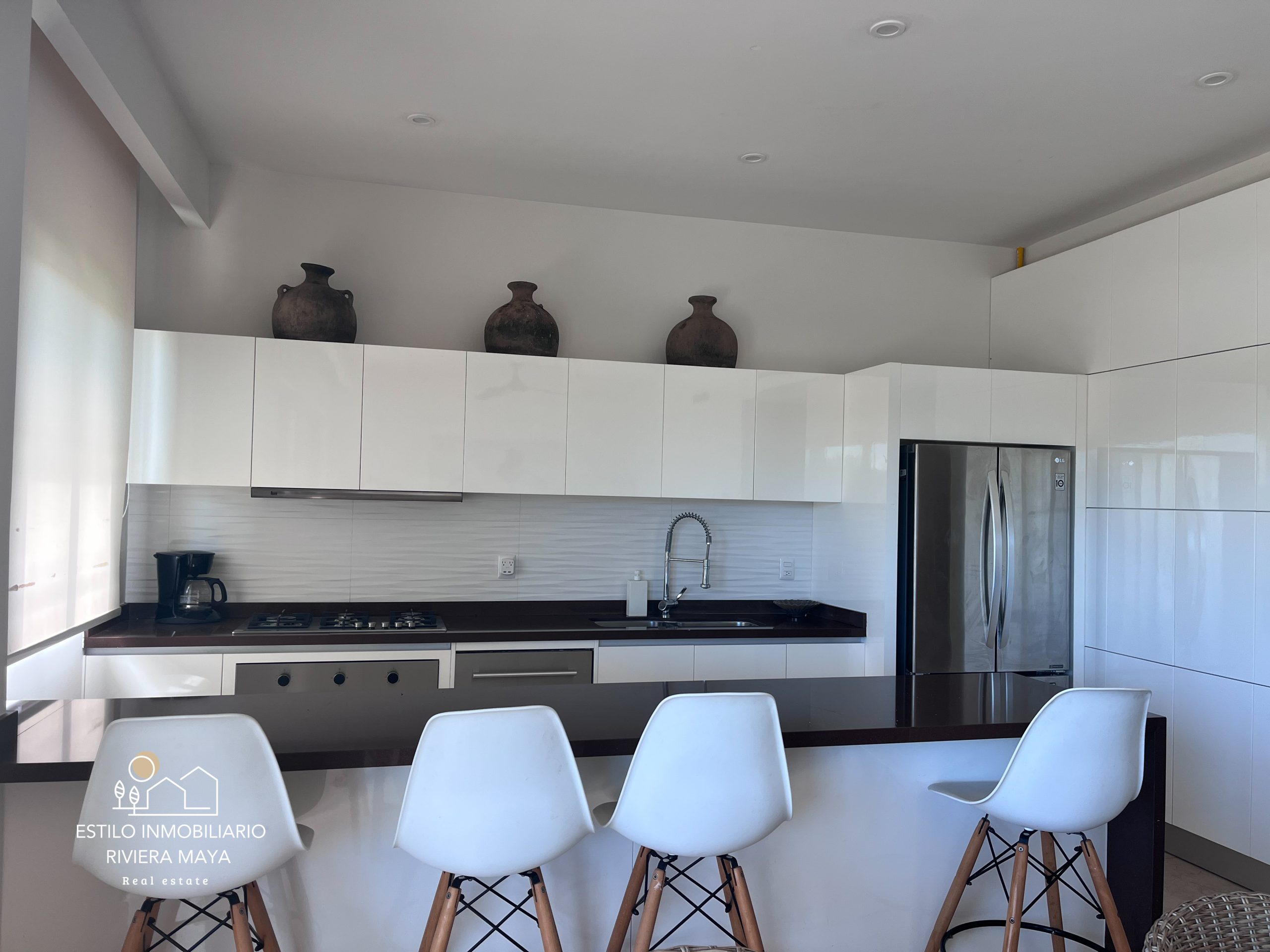 La propiedad se encuentra totalmente amueblada con un estilo moderno y decoraciones cuidadosamente seleccionadas. Cuenta con 3 habitaciones y 2.5 baños, amplios espacios de sala y comedor, y una terraza con vista directa a la marina, ideal para disfrutar del entorno náutico que distingue a Puerto Aventuras.